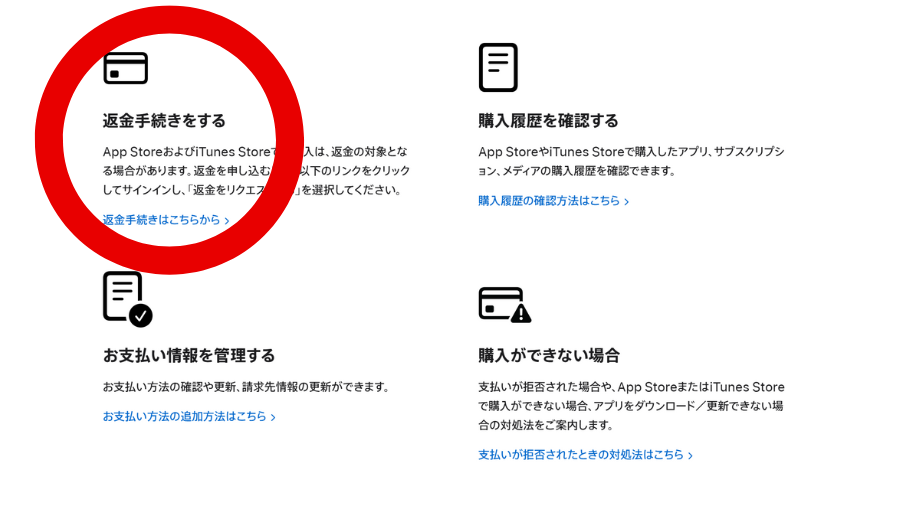 各ストア・キャリアの公式窓口で返金申請